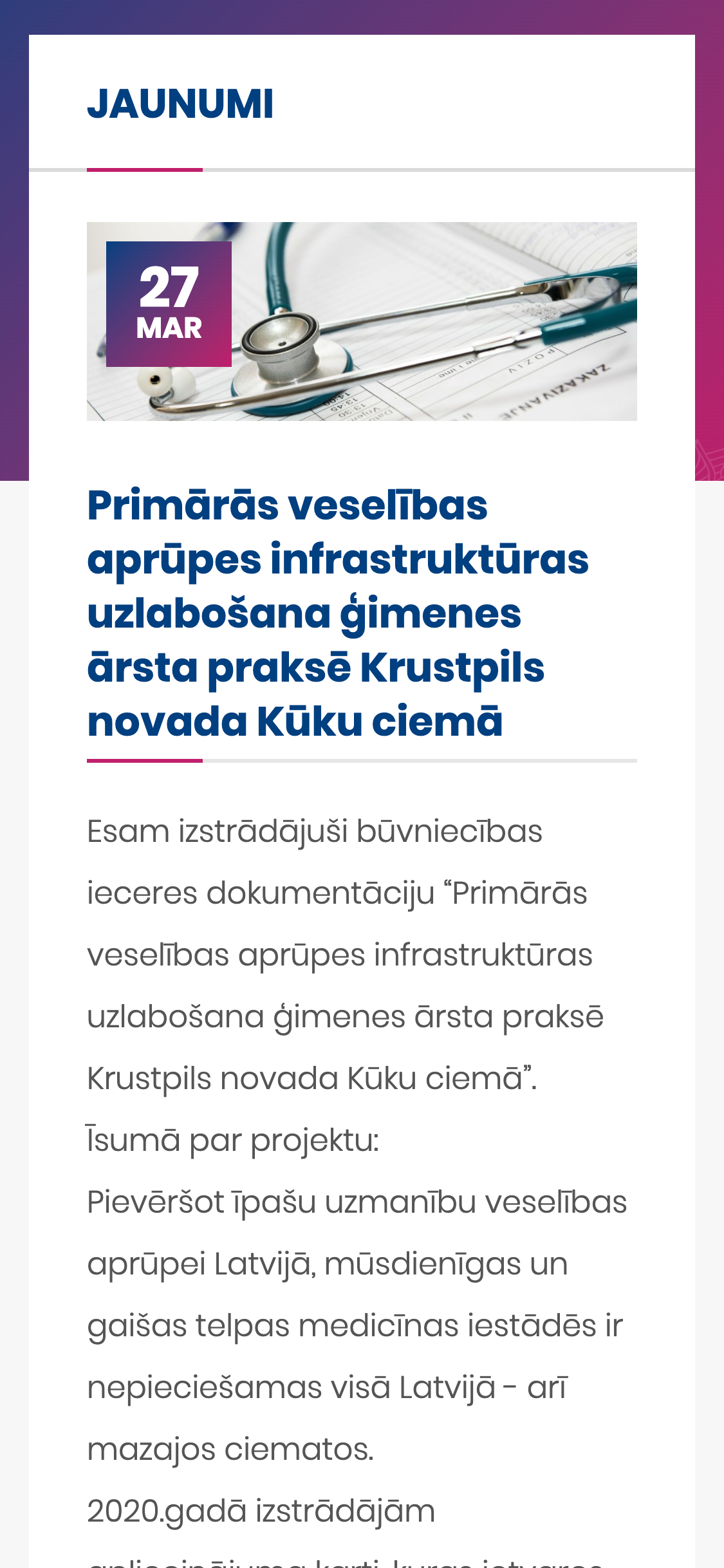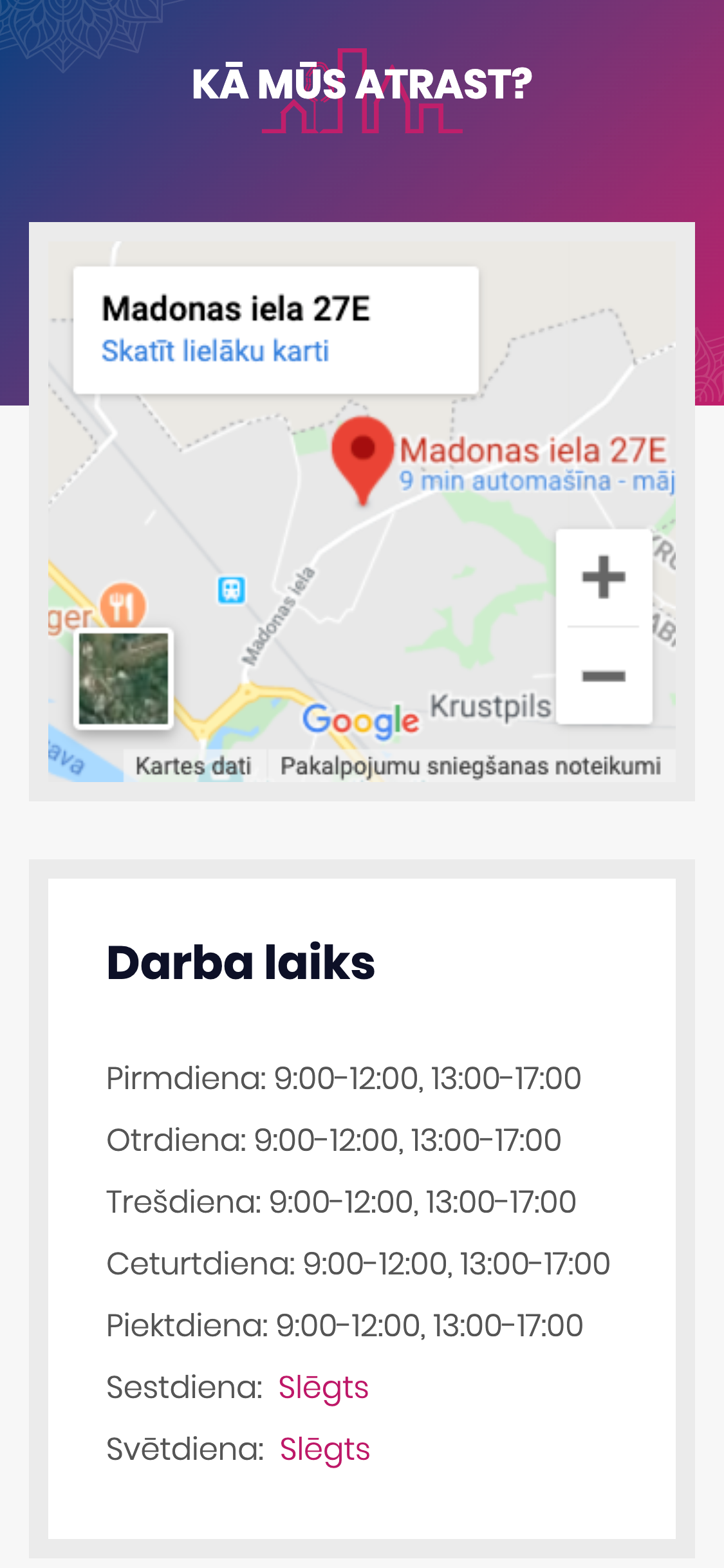 Pēc klienta vēlmēm izstrādājām vieglu, samērā klasisku biznesa mājaslapu. Mājaslapā ir likts akcents uz kontaktinformāciju, paveiktajiem darbiem un pakalpojumu veidiem. Nekā lieka un nekā par maz.