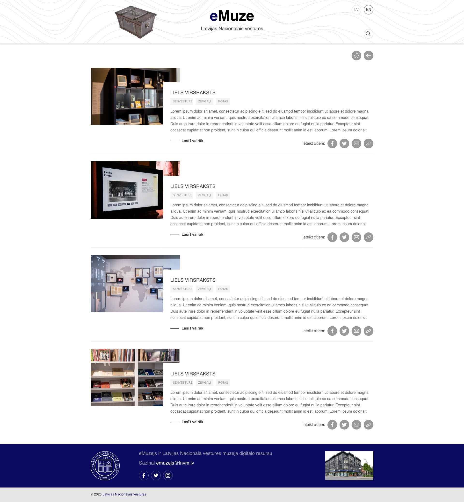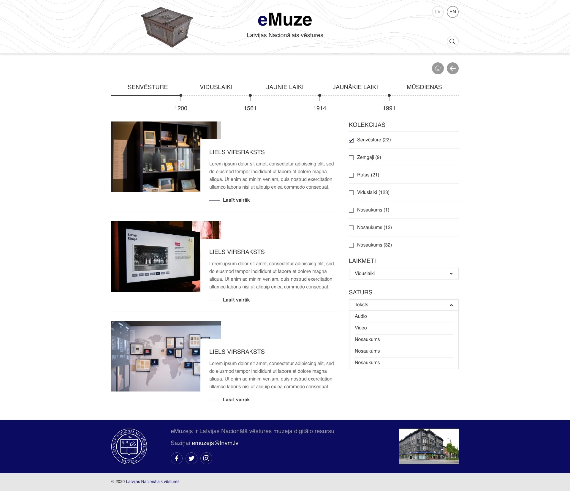 SākumlapaMūsu projektiDizainseMuzejs Latvijas nacionālā eMuzeja dizaina izstrāde. eMuzejs ir Latvijas Nacionālā vēstures muzeja digitālo resursu krātuve. Ieteikt: