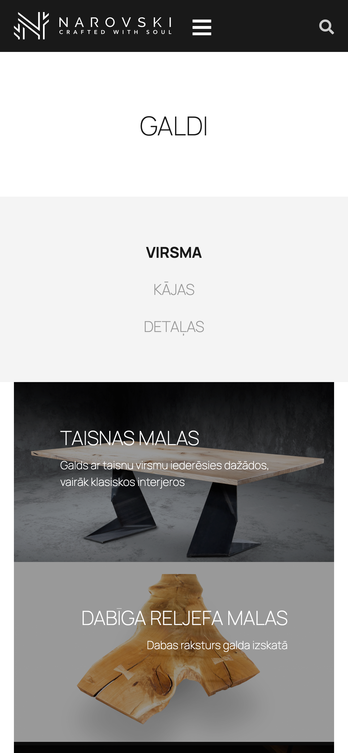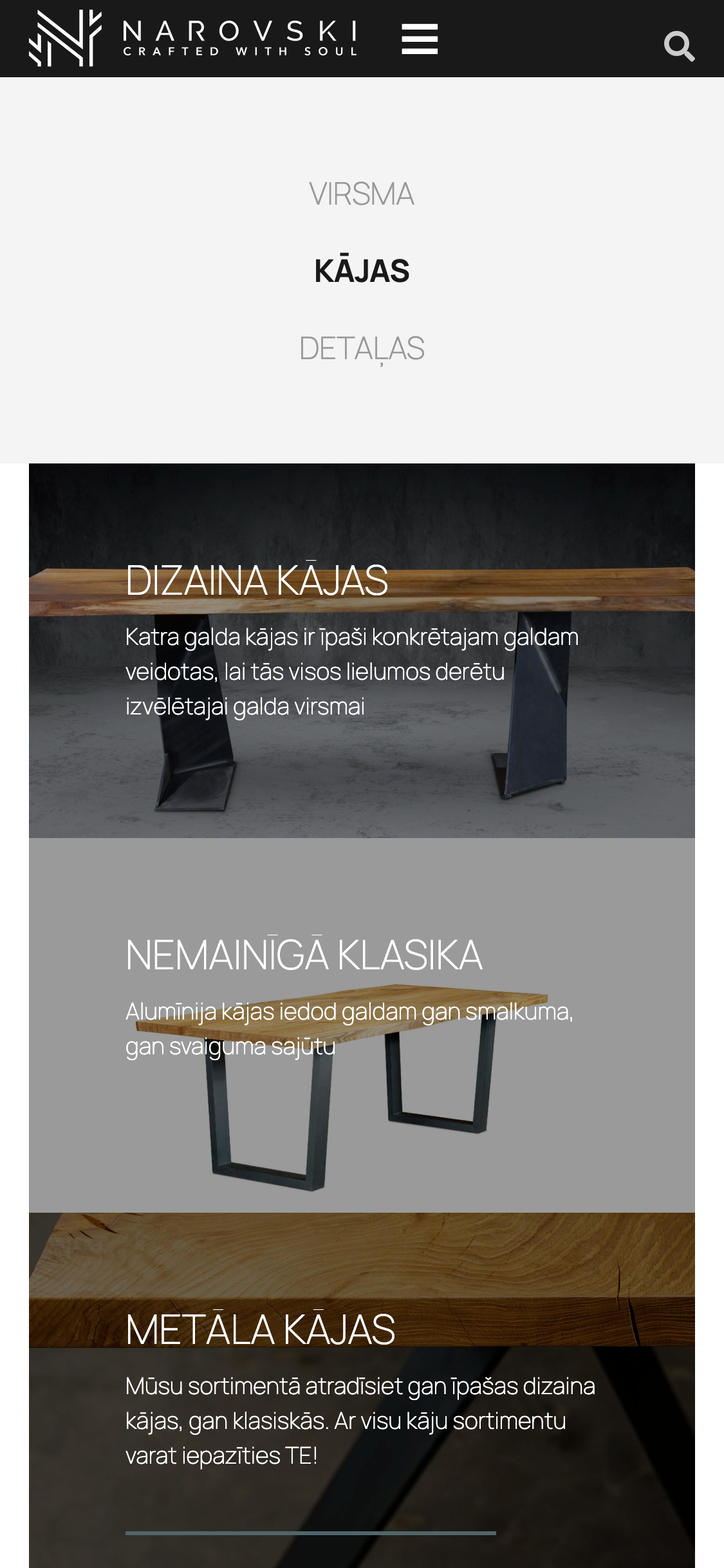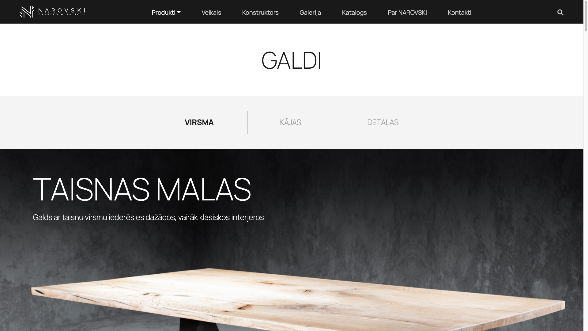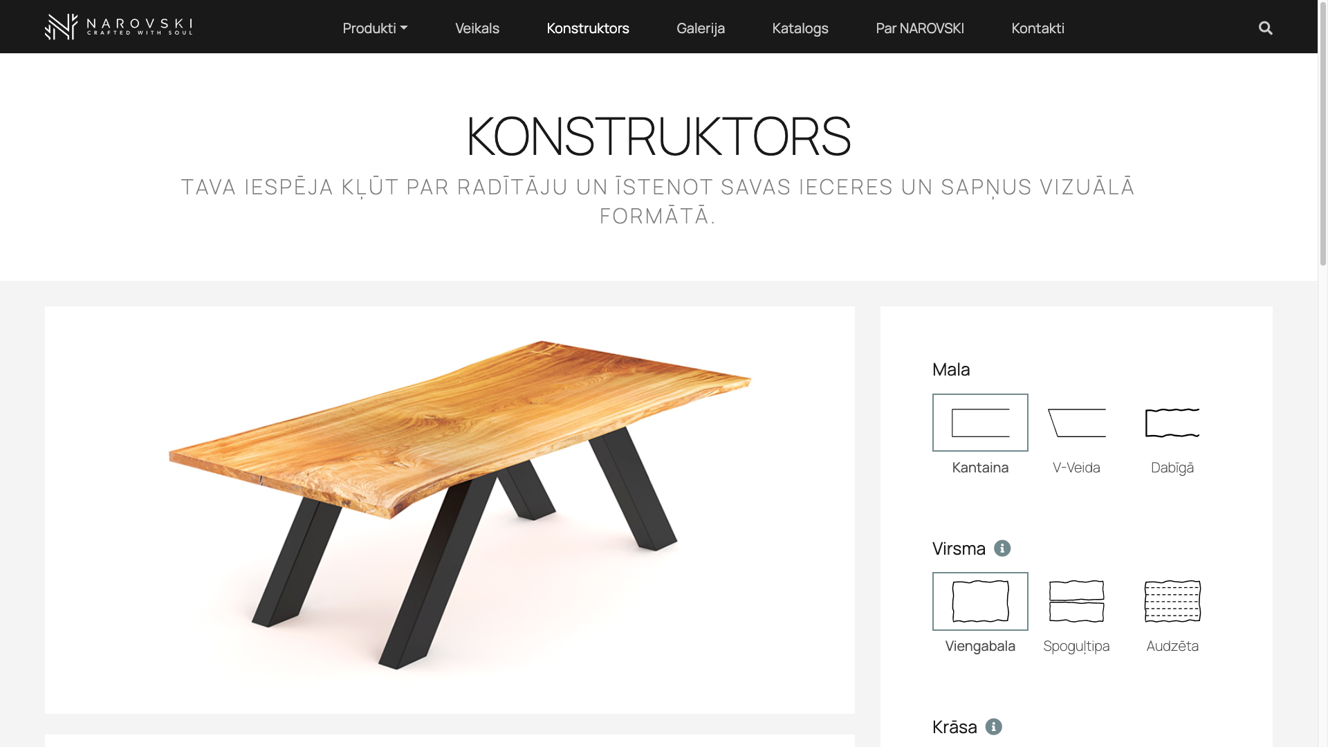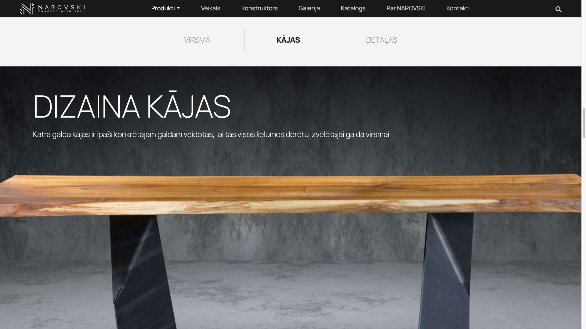 Esam izstrādājuši Narovski mājaslapu un mājaslapas dizainu, kā arī responsīvo dizainu. Liela nozīme šim projektam ir jāpiešķir tieši dizainam un lietotāja pieredzei, kas tika balstīta uz intuitīviem un ērtiem risinājumiem. Dizains ir veidots viegli tverams un bez liekas informācijas, uzsverot tieši grafisko materiālu. Vēlamies izcelt arī sadaļu „Konstruktors“, kurā ir iespēja uzbūvēt savu galdu, uzzināt cenu un veikt pasūtījumu. Uzmanības vērta ir arī sadaļa „Produkti“, kur tika izmantots risinājums galveno informāciju pasniegt nepiespiestā veidā ar samērā mazu informācijas daudzumu un plūstošiem attēliem.
