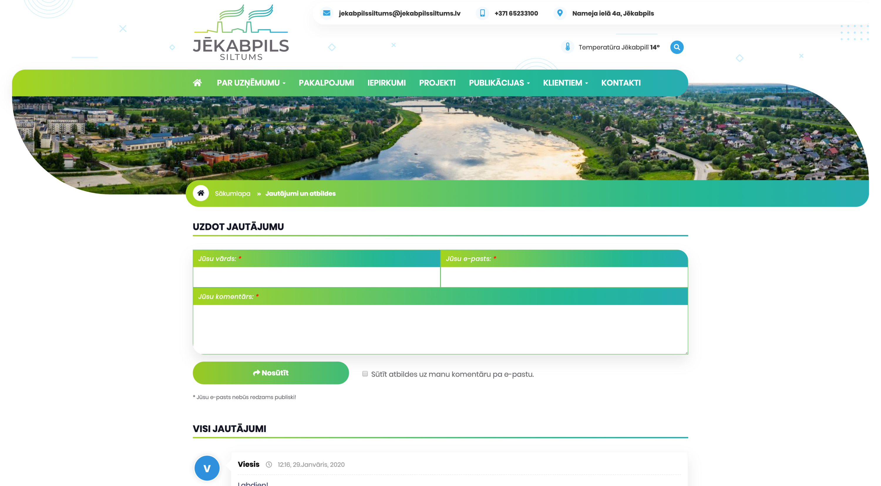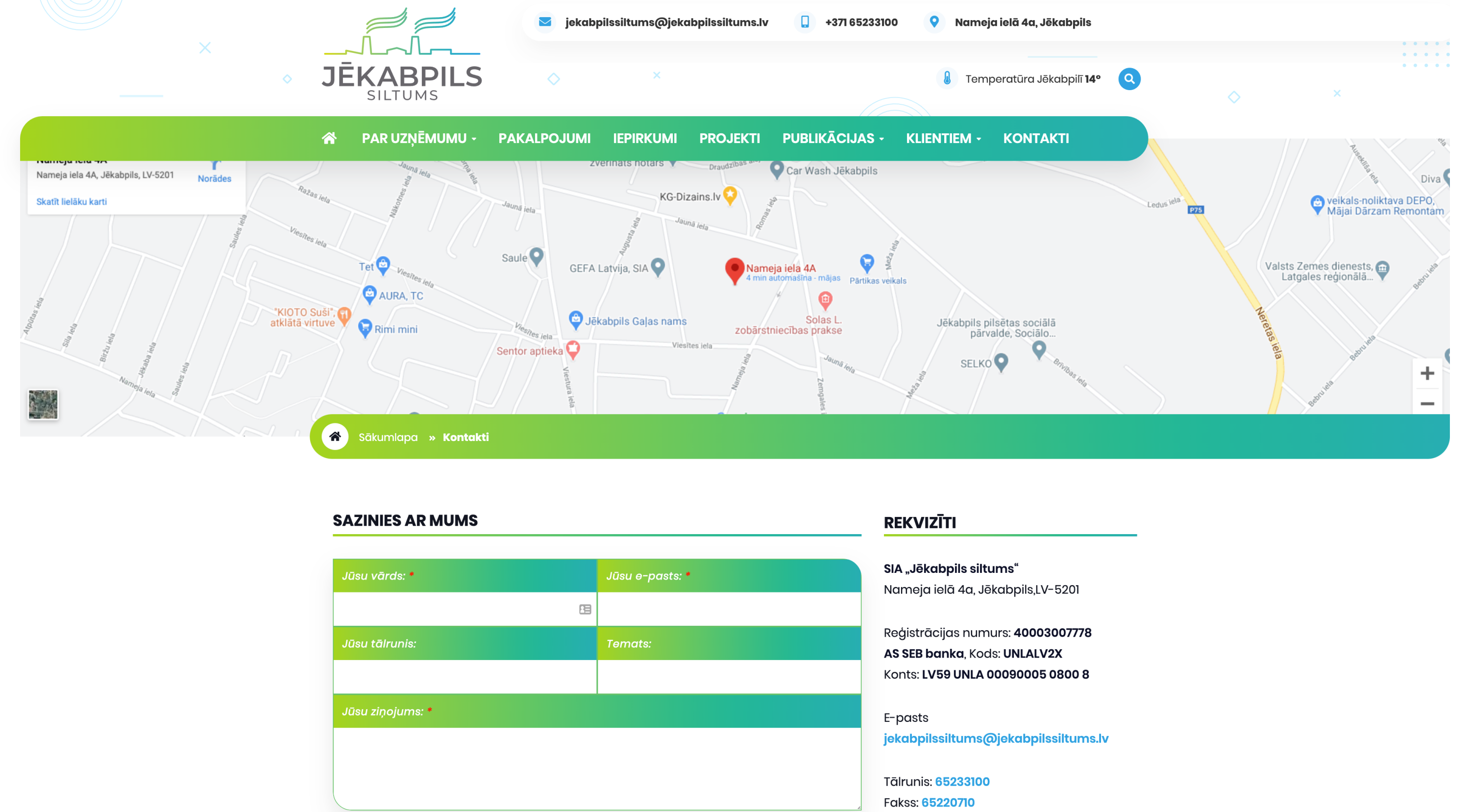 Mājaslapas SIA "Jēkabpils Siltums" izstrāde un dizains.