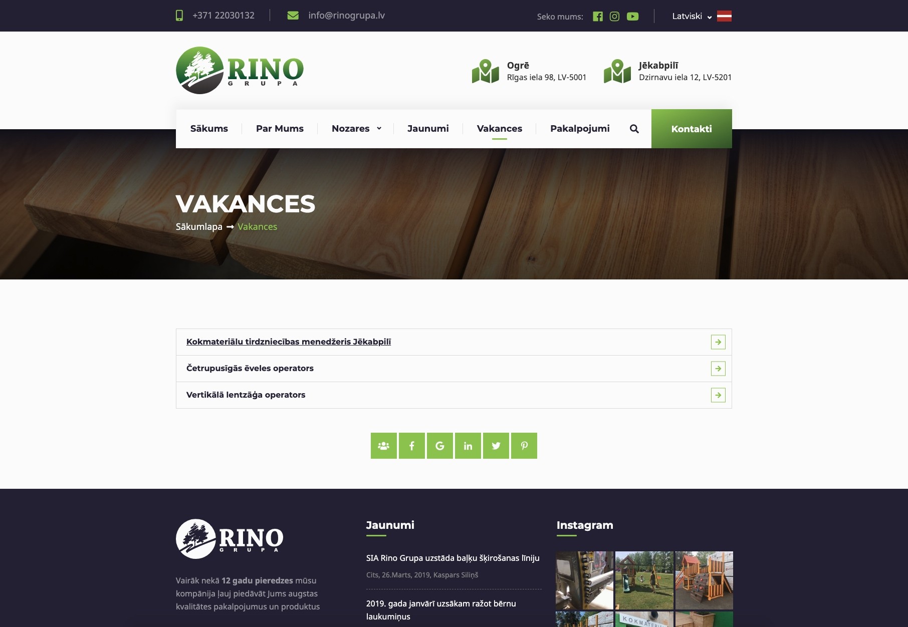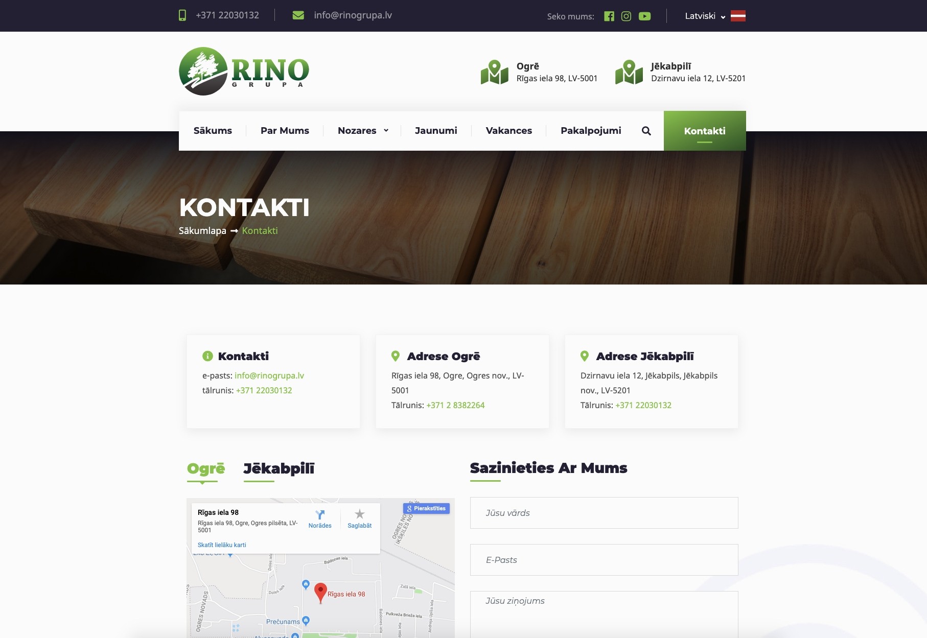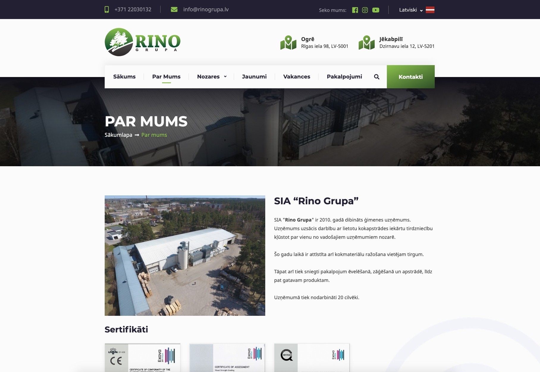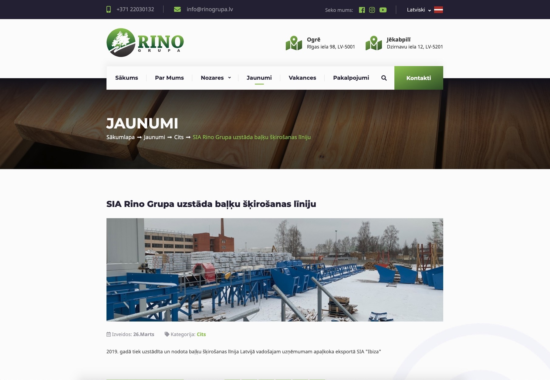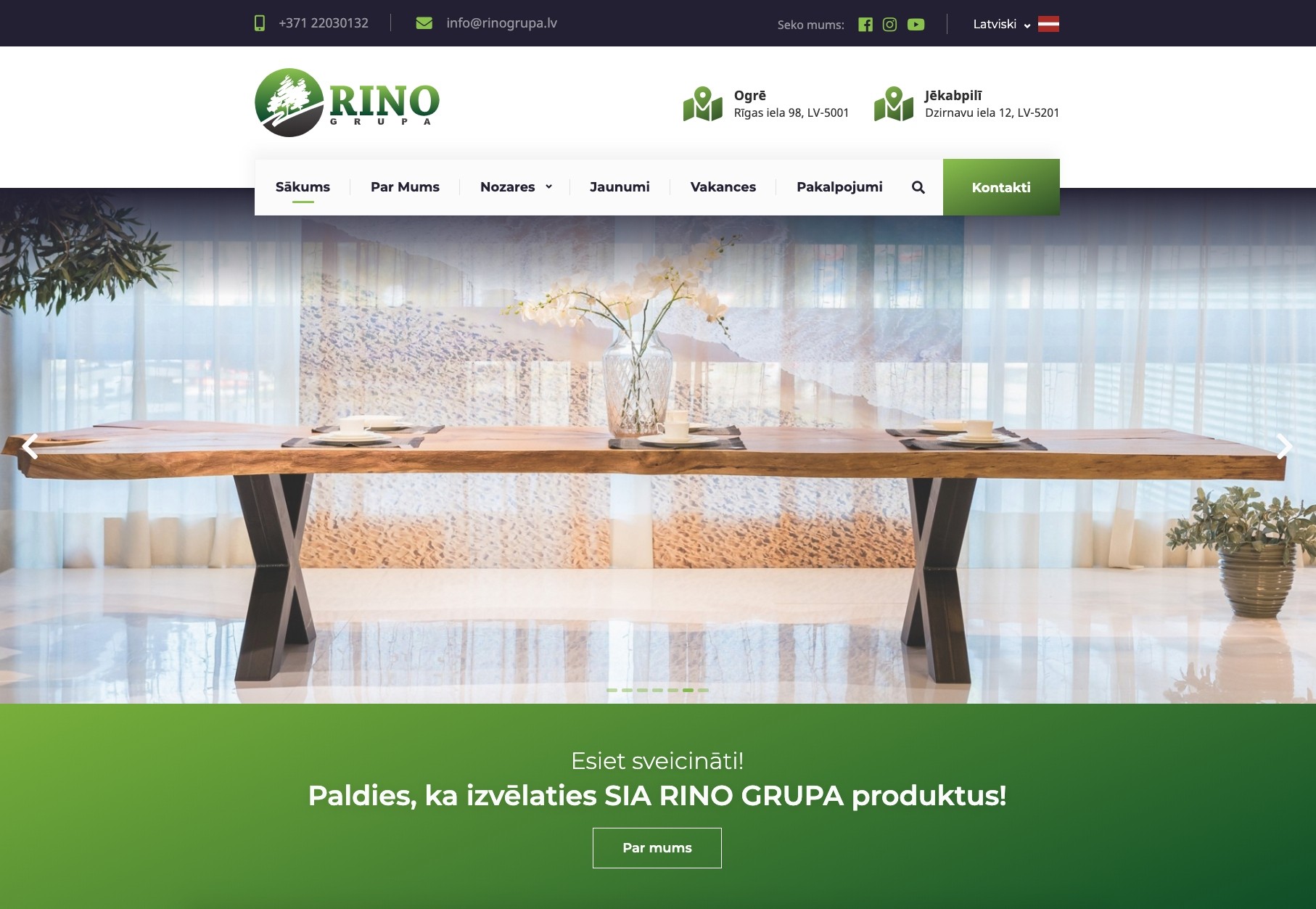 Kompānijas SIA "Rino Grupa" mājas lapas izstrāde un dizains.