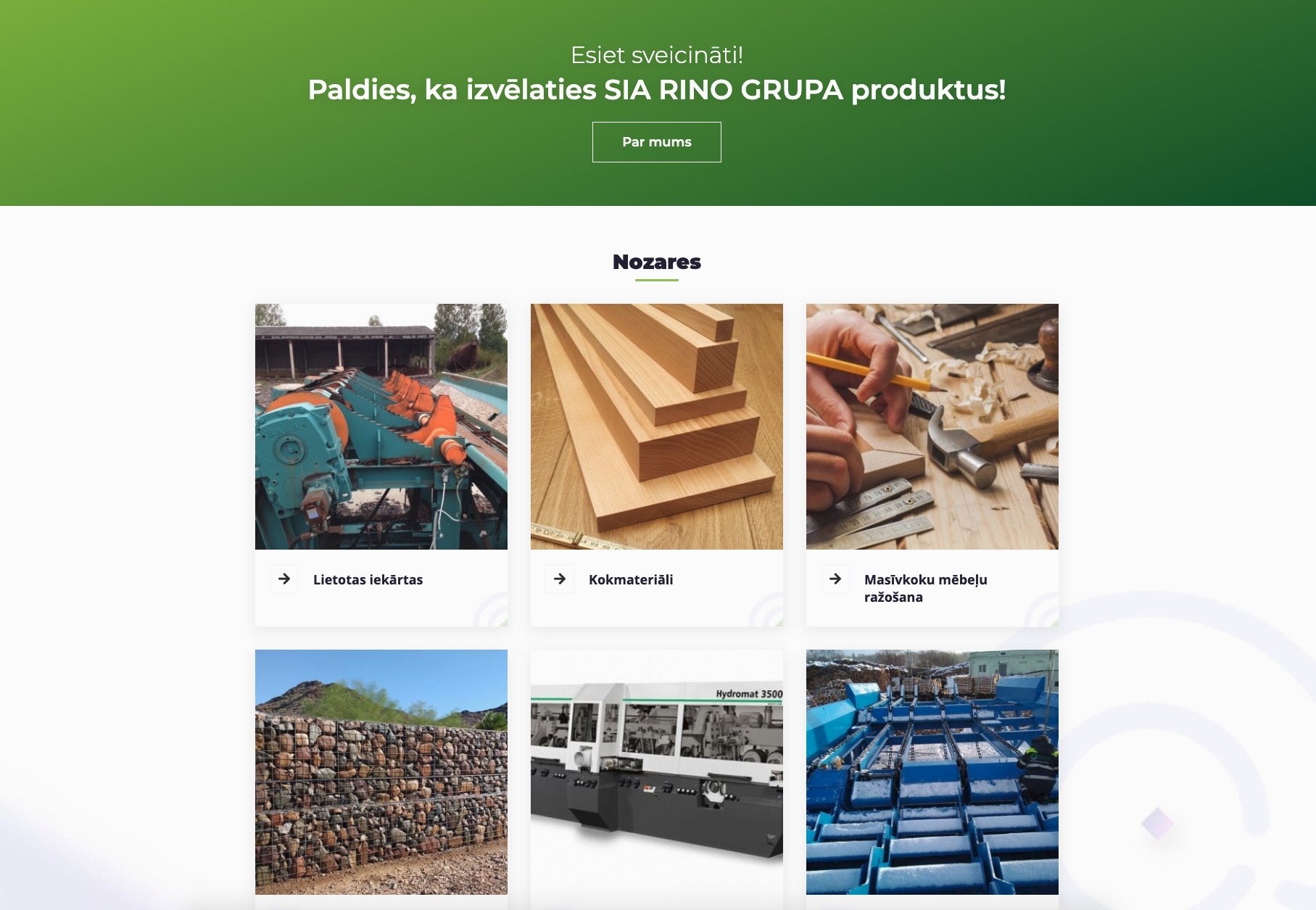 SIA "Rino Grupa" ir 2010. gadā dibināts ģimenes uzņēmums. Uzņēmums uzsācis darbību ar lietotu kokapstrādes iekārtu tirdzniecību kļūstot par vienu no vadošajiem uzņēmumiem nozarē.