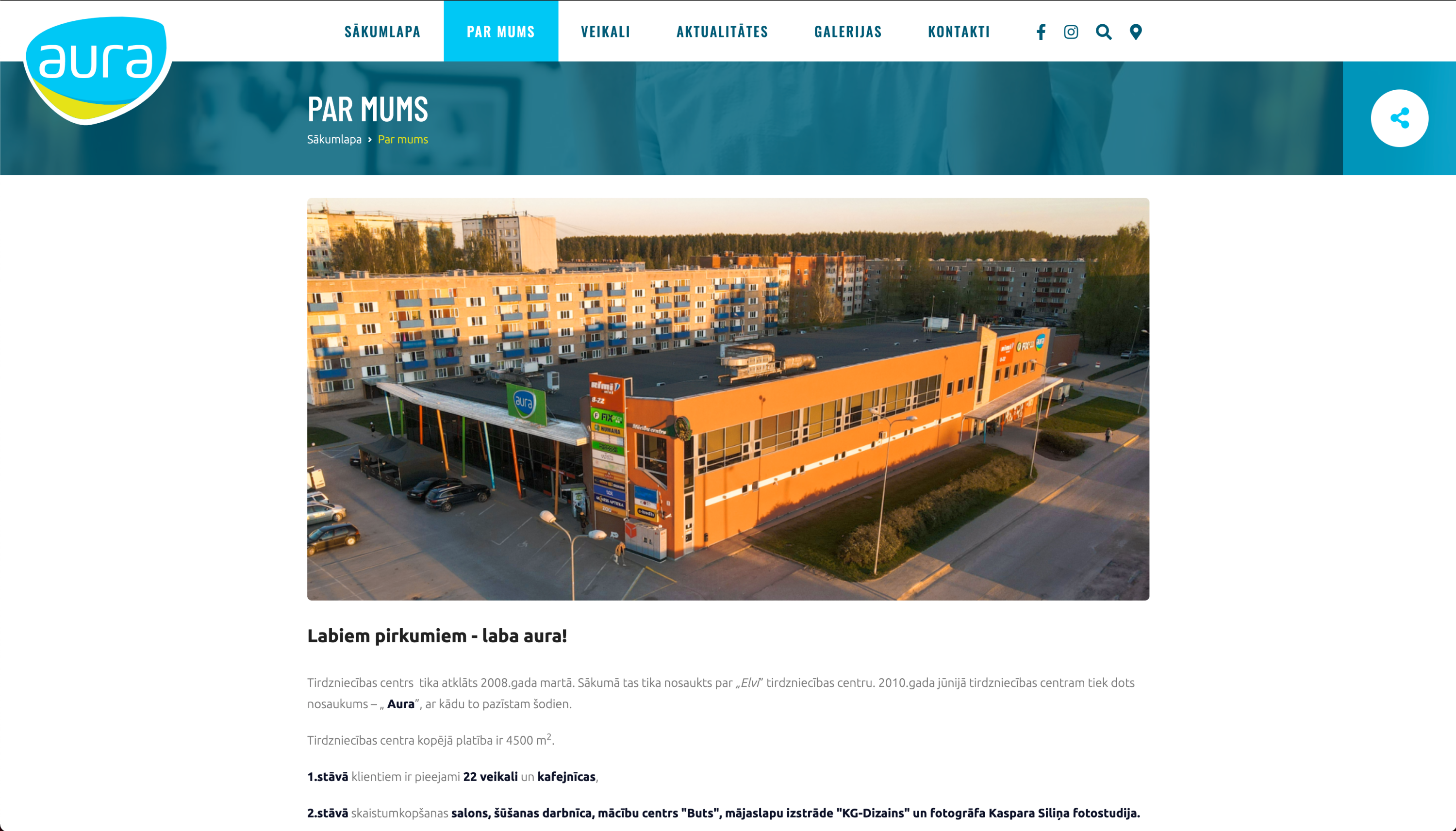 TC Aura tiek piedāvātas preces un pakalpojumi ar vislabākajām cenām un atlaidēm Jēkabpilī. Tirdzniecības centra modernais un interesantais dizains nodrošina klientiem patīkamu un mājīgu atmosfēru. Mums ir svarīgi, lai katrs, kurš ienāk TC Aura, justos īpašs. Iepērkoties veikalos, ieturot maltīti, svinot svētkus vai atpūšoties pasākumos, katrs sev gūtu pozitīvas emocijas un sajustu labo auru, ko mēs sniedzam saviem klientiem.