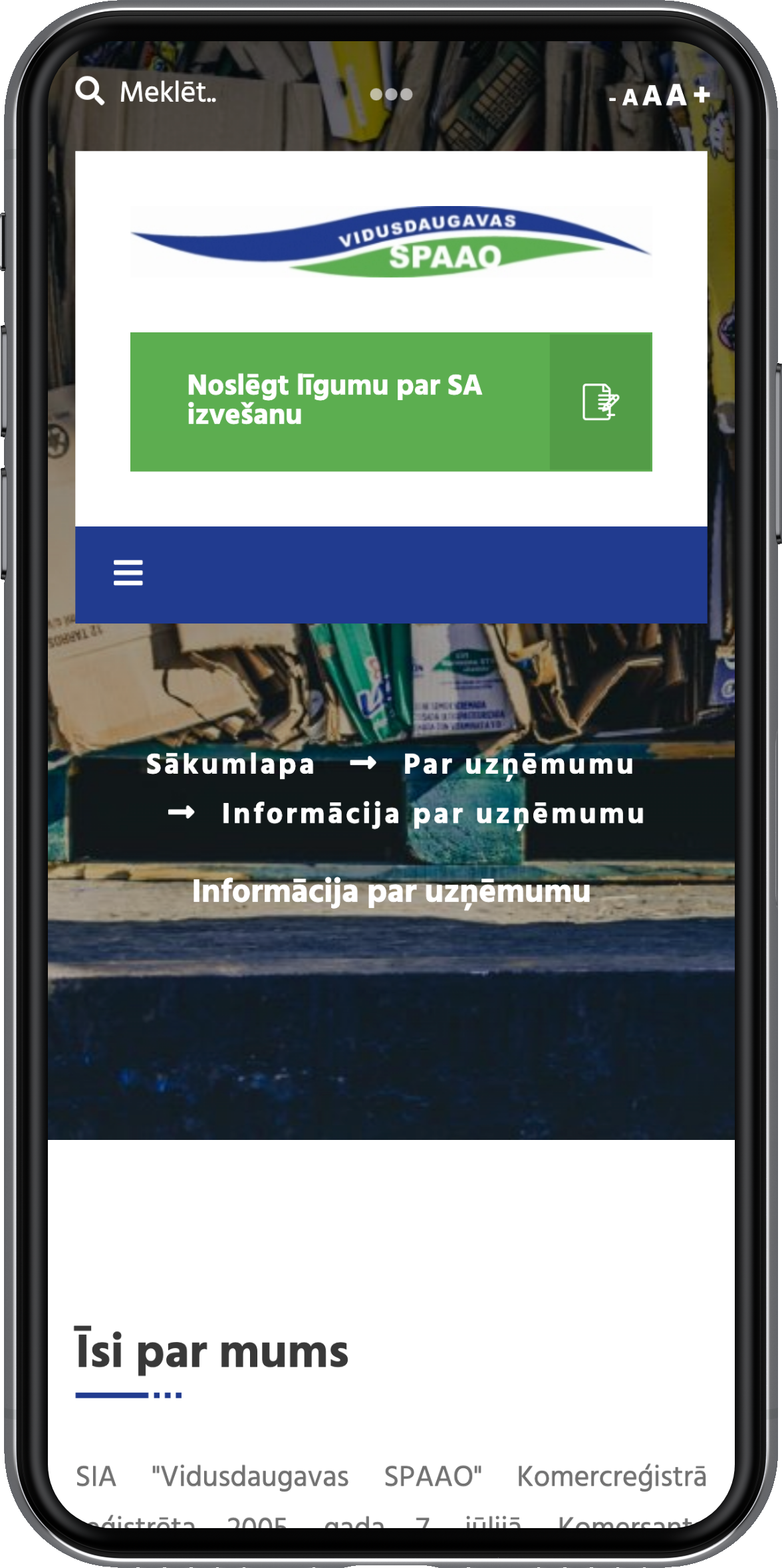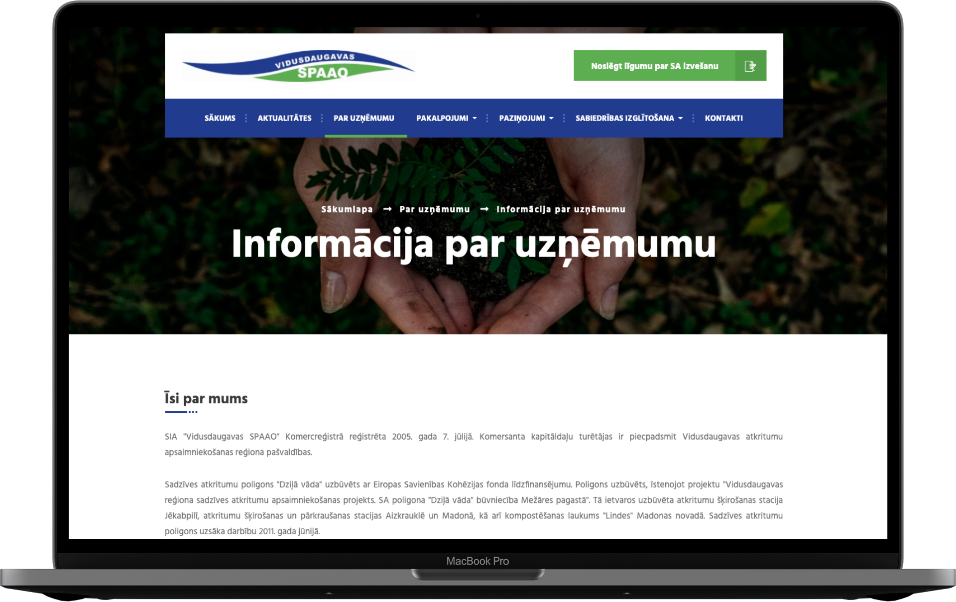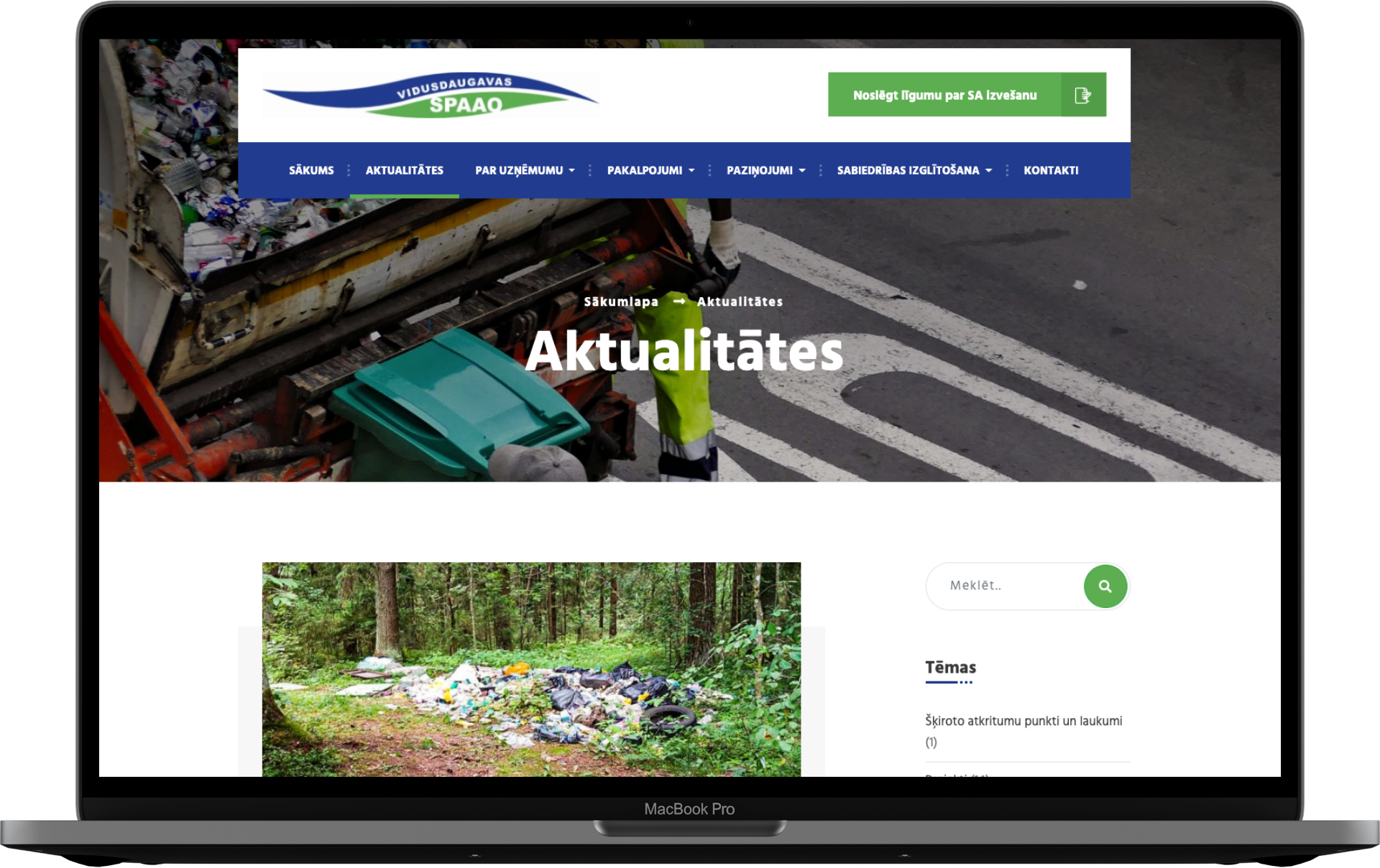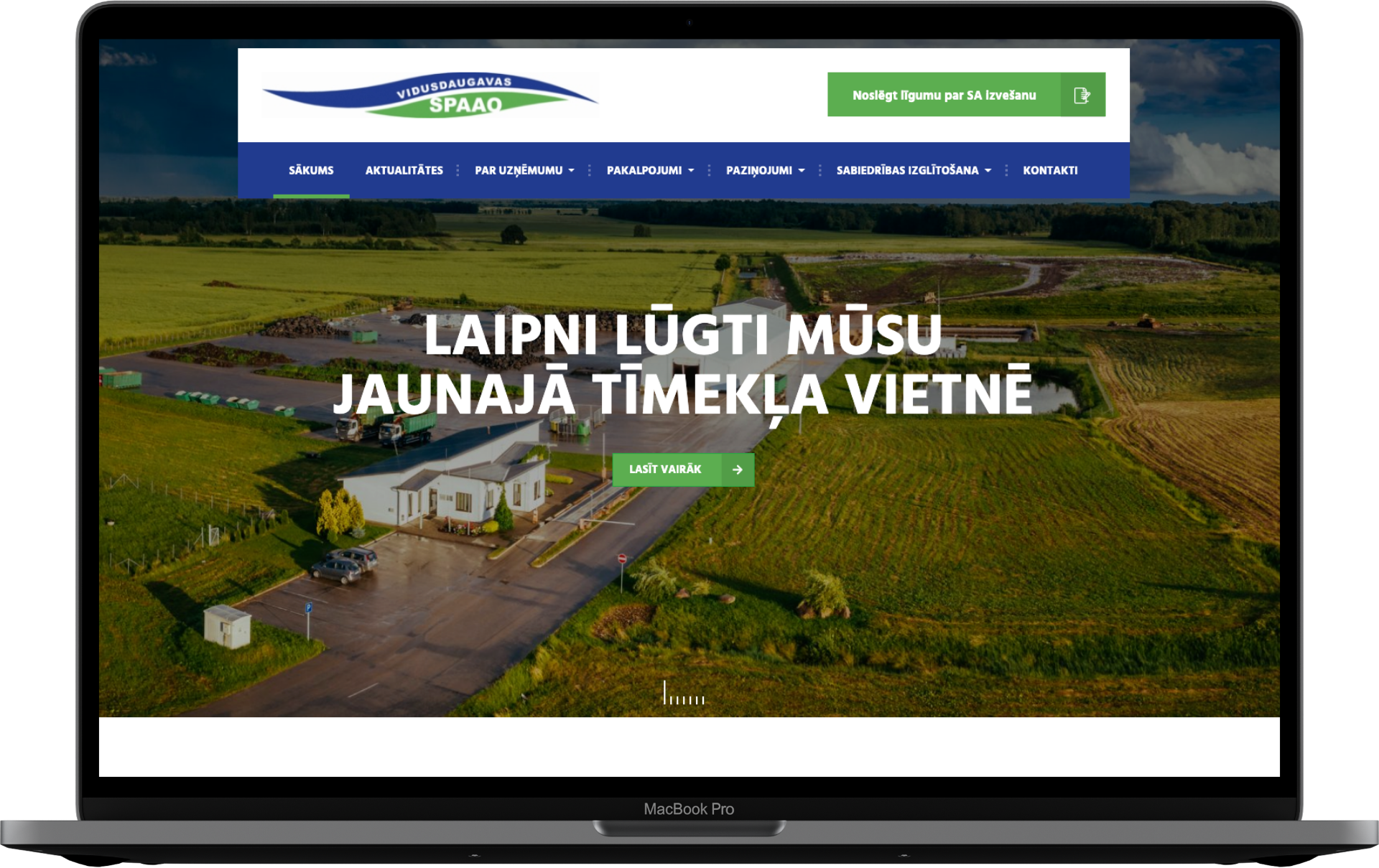 KG Dizains komanda ir izstrādājusi jaunu mājas lapu uzņēmumam Vidusdaugavas SPAAO. Ar lepnumu varam publicēt šo projektu, jo Vidusdaugavas SPAAO nodarbojas ar atkritumu apsaimniekošanu. Atkritumi ir liela problēma, par ko daudzi izvairās runāt, bet to mazāk nepaliek. Varam droši apgalvot, ka uzņēmums to dara godprātīgi un ar patiesu interesi, lai Latvija taptu vēl tīrāka. Šo atbildību pierāda arī sadaļa "Vides izglītība", kur uzņēmums mājas lapas apmeklētājus izglīto par vidi. Mājas lapā ir iekļauta visa nepieciešamā informācija par uzņēmumu un tā pakalpojumiem. Kontaktu sadaļā ir izmantots interaktīvs kartes risinājums uzņēmuma struktūrvienību attēlošanai kartē. Tika veikta arī fotogrāfēšana ar kvadrokopteri(dronu) sadarbībā ar www.kaspars-silins.lv